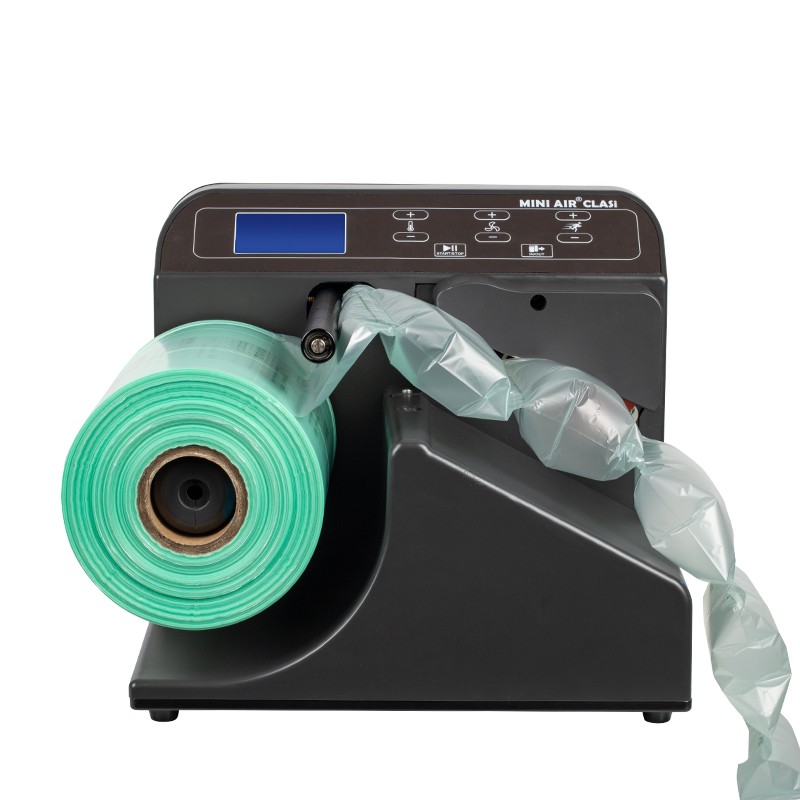 MINI AIR EA2迷你型緩沖氣墊機是一款小巧多功能的智能緩沖氣墊機。可用于氣泡枕、葫蘆膜等多樣式緩沖氣墊膜充氣。內置光電感應,智能探測無膜自動停機,環境溫度感應自動調節熱封溫度,性能強大,一鍵即可啟動,無需預熱。
