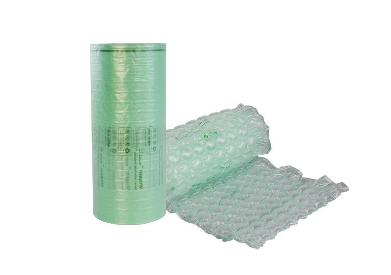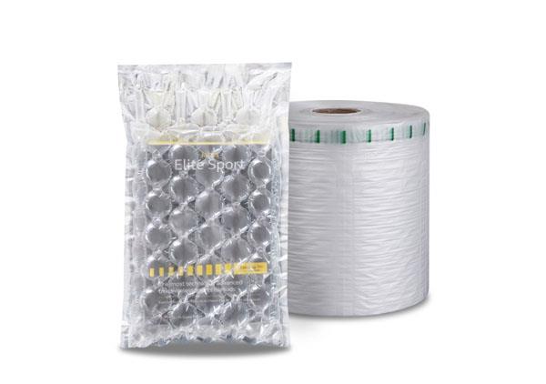 BioAir 全生物降解葫蘆膜(Wrapper)(Compostable bubble wrap)是由全生物降解材料(PBAT)通過吹膜設備和制袋設備制成的葫蘆狀薄膜產品。使用時經過充氣設備充氣熱封后,用于包裝容器內產品的裹包、鋪墊及空隙填充,可有效吸收貨物運輸過程中因晃動、震動、碰撞、拋丟所帶來的沖擊力,起到緩沖保護的作用,確保產品運輸安全。同時在自然環境中分裂降解為二氧化碳和水,是一款環保可降解的緩沖保護包裝材料。