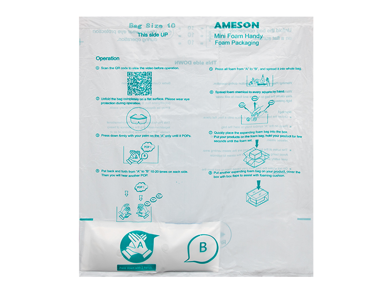 mini foam Handy 手拍發泡袋是一種便攜式聚氨酯現場發泡包裝產品,將發泡A液、B液分別裝在A、B袋中,通過按壓A袋,使A、B袋連通,并通過交替拍打,使A、B液混和反應生成泡沫進而保護產品,能夠快速為小型、不規則、易碎等物品塑造貼身緩沖保護包裝,常溫儲存、便于攜帶、無需購買設備、即拍即用。