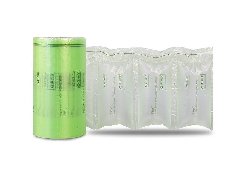 MINI AIR LDPE回收料氣泡枕(Filler)(Recycled LDPE Air Pillow)是由LDPE回收材料通過吹膜設備和制袋設備制成的氣囊狀薄膜產品。由99%空氣和1%PE膠膜組成,極大節約了包裝材料倉儲空間;可承受50~120kg的壓力,使用時經過充氣設備充氣熱封后,用于包裝容器內產品的填充、減震、穩固產品,可有效吸收貨物運輸過程中因晃動、震動、碰撞、拋丟所帶來的沖擊力,起到緩沖保護的作用,確保產品運輸安全。通過全球第三方SGS物理性能測試,符合RoHS材料安全標準,深受電子儀表、陶瓷工藝品、家用電器、五金工具產品和精密儀器等行業的青睞。